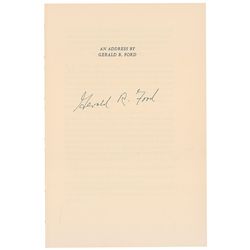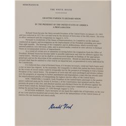 Souvenir typescript of Ford’s presidential pardon granted to Richard Nixon, one page, 8.5 x 11. In part: “I, Gerald R. Ford, President of the United S