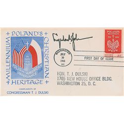 FDC with a cachet honoring Poland’s Christian Heritage Millennium, with a stamped address of Congressman T. J. Dulski, signed near the top in black fe