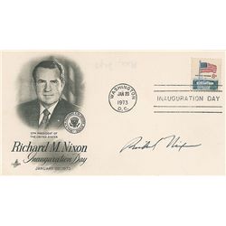 Inauguration Day cover with a cachet honoring Nixon’s 1973 inauguration, signed in black ink. In fine condition.