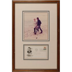 Inaugural cover with a cachet honoring Nixon’s 1969 inauguration, signed in black ink by Richard Nixon and in blue ink by Pat Nixon. Triple-matted and