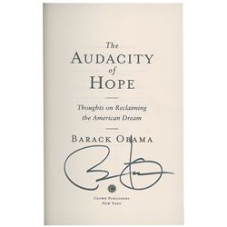 Signed book: The Audacity of Hope. First edition, later printing. NY: Crown Publishers, 2006. Hardcover with dust jacket, 6.5 x 9.5, 375 pages. Signed