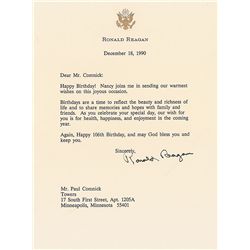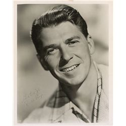 Two items: one color satin-finish 8 x 10 three-quarter-length photo of Reagan, signed and inscribed in the lower border in black felt tip, “Happy Birt