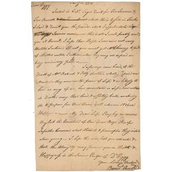 ALS signed “Your Loving Husband, Bened’t Arnold,” one page, 8 x 12.75, January 21, 1774. Letter to his wife Margaret Mansfield Arnold. In full: “Inclo