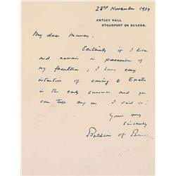 British politician who served as prime minister three times (1867–1947). ALS signed “Baldwin of Bewdley,” one page, 6.25 x 8, Astley Hall letterhead,
