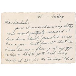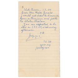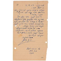 ALS in English, signed in Hebrew, one page, lightly-lined, 4.5 x 8.25, Ideh-Boker, Israel, July 1, 1964. Letter to a woman. In part: “I would not dare