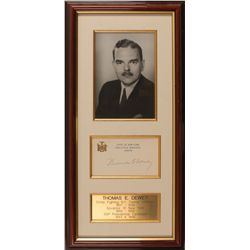 Vintage ink signature, “Thomas E. Dewey,” on an off-white 4.75 x 3 State of New York Executive Mansion card. Nicely matted and framed with a portrait