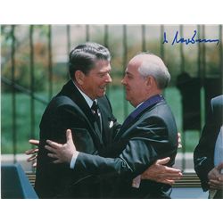 Color glossy 10 x 8 photo of Gorbachev greeting Ronald Reagan, signed in blue felt tip. In fine condition. Accompanied by a certificate of authenticit
