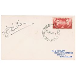 New Zealand postal cover, 5.75 x 3.5, with a stamp honoring the Ross Dependency, signed in black ballpoint by Hillary. In fine condition, with light s