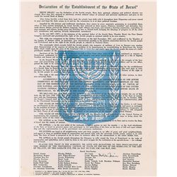 Souvenir typescript featuring the ‘Declaration of the Establishment of the State of Israel,’ one page, 8.5 x 11, signed at the bottom in black ballpoi