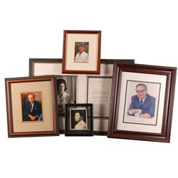 Five items: a vintage glossy 4 x 5 photo of Ferdinand Marcos, signed and inscribed in fountain pen; a color satin-finish 3.25 x 5 photo of Edmund Hill