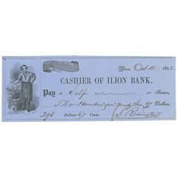 Nineteenth-century American firearms manufacturers. Two checks: one bank check, 6.75 x 2.5, filled out and signed by Samuel Remington, “S. Remington,”