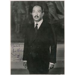 Matte-finish 7 x 9.25 portrait, signed and inscribed in black felt tip, “To Jacob—Best Wishes, Anwar Sadat.” In very good condition, with a noticeable