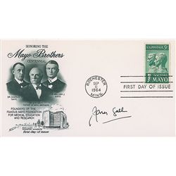 Two items: one FDC with a cachet honoring the Mayo brothers, signed in black felt tip, “Jonas Salk”; and one booklet entitled ‘The Arabs Need and Want