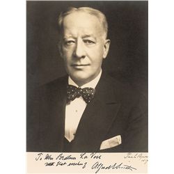 Vintage matte-finish 8 x 10 photo, signed and inscribed in the lower border in fountain pen “To my ‘first Client’—John W. Snyder, with every good wish