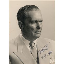 Longtime leader of Yugoslavia (born 1892) from 1945 until his death in 1980. Vintage matte-finish 5 x 7 portrait of Tito, signed in fountain pen and d
