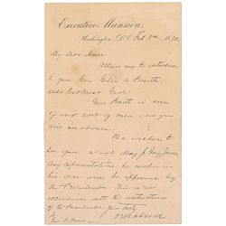 Union general and private secretary to U. S. Grant (1835–1884). ALS signed “O. E. Babcock,” one page, 5 x 8, Executive mansion letterhead, February 3,
