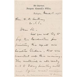 Army physician (1817–1883) who served as the army’s surgeon general from 1864 to 1882. ALS signed “J. K. Barnes, Surg, Genl. U. S. A.,” one page both