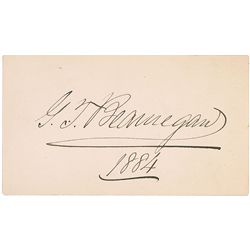 Florid ink signature, “G. T. Beauregard, 1884,” on an off-white 4.5 x 2.5 card. In fine condition, with light toning.