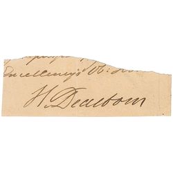 Ink signature, “H. Dearborn,” on an off-white 3.75 x 1.25 slip. In fine condition, with a rough top edge, partial line of text above signature, and a