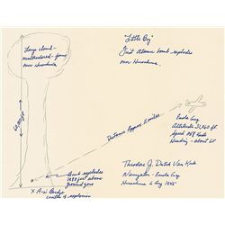 Original signed pencil and ink sketch on an off-white 11 x 8.5 sheet. Van Kirk draws a large mushroom cloud with a caption “Large cloud—multicolored—f