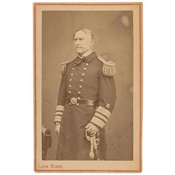 Original 2.5 x 4 carte-de-visite portrait of Farragut in uniform by Leon Bravy of Mahon, Spain, inscribed on the reverse in black ink and signed, “D.