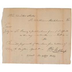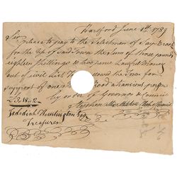 Revolutionary War general and, later, treasurer of Connecticut (1743–1818). Manuscript DS, signed “Jedediah Huntington, Esq. Treasurer,” one page, 7.2