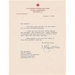 TLS signed “G. C. Marshall,” one page, 6.5 x 8.5, American National Red Cross, National Headquarters letterhead, January 7, 1950. Letter to Secretary