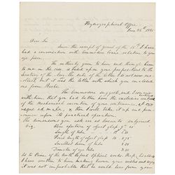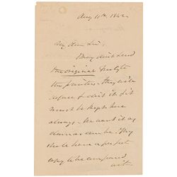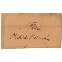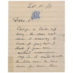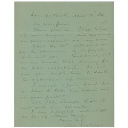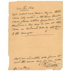 ALS, one page, 6 x 7.5, April 5, 1886. Letter to an unidentified recipient. In full: “Yours just in. Glad to hear of your success. This as much on you