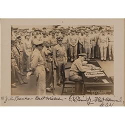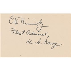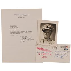 Two items: one 3.75 x 5 matte-finish portrait of Nimitz, signed in the lower border in fountain pen, “C. W. Nimitz, Fleet Admiral”; and one TLS signed