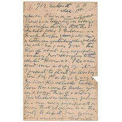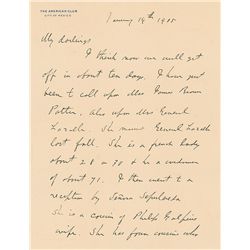 ALS, two pages, 8.5 x 11, The American Club, City of Mexico letterhead, January 14, 1905. Letter to his daughter. In part: “I have just been to call u