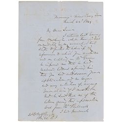 Naval officer and oceanographer (1806–1873) who published the first textbook of modern oceanography. LS signed “M. F. Maury,” one page both sides, lig