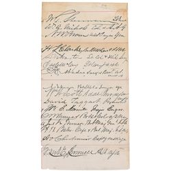 Ink signature, “W. T. Sherman, Lt. Genl.,” on an off-white 3.5 x 6.75 sheet. Also signed by a slew of members of his staff: William Augustus Nichols,