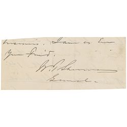 Ink signature, “I am as ever your friend, W. T. Sherman, General,” on an off-white 4.75 x 2 slip clipped from the conclusion of a letter. Affixed with