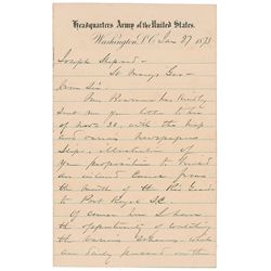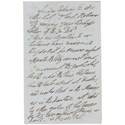 ALS signed “W. T. Sherman, General,” three pages on two lightly-lined adjoining sheets, 5 x 8, Headquarters Army of the United States letterhead, Janu