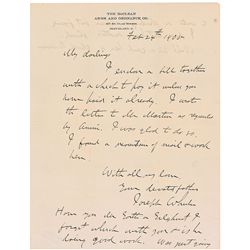 ALS, one page both sides, 8.25 x 11, McClean Arms and Ordnance letterhead, February 24, 1905. Letter to his wife. In part: “I enclose a bill together
