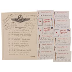 Thirteen items: a printed poem entitled ‘American Fighter Ace’ by Frank Kibbe, signed in pencil by James Kasler, Boots Blesse, Frank Klibbe, Steve Pis