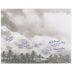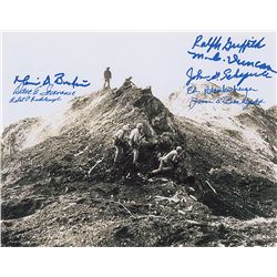Satin-finish 10 x 8 photo, signed in blue and black felt tip by Edward Harper, Glenn Bowers, James Hill, Fred Losch, and Tom Emrich. In fine condition