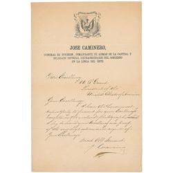 Governmental official from the Dominican Republic. LS signed “J. Caminero,” one page, 8 x 12.5, official letterhead, no date. Letter to President U. S