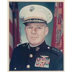 Highly decorated Marine fighter ace (1915–2008) credited with five kills. Color glossy 8 x 10 official Department of Defense photo of Elwood in his dr