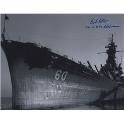 Uncommon satin-finish 14 x 11 photo of the USS Alabama, signed in blue felt tip, “Bob Feller, ‘WWII USS Alabama.’” In very fine condition.