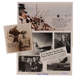 Three photos: color glossy 10 x 8 photo of the Japanese surrender, signed in black felt tip, “Good luck, God bless. Gene Fluckey, Skipper & War ...