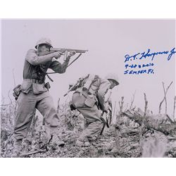 Glossy 10 x 8 photo of Hargraves providing cover fire with his M1 Thompson submachine gun, signed in blue felt tip, “D. T. Hargraves, Jr., 4-28-2010,