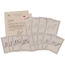 Four items: three TLSs, each one page, approximately 7 x 8.5, dated between 1993 and 1994, all responding to an admirer; and one color satin-finish 8