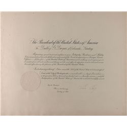 Partly-printed DS as president, one page, 23 x 19, December 17, 1927. President Coolidge appoints Dudley G. Dwyre as “a Foreign Service Officer of cla