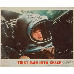 Original color 13.5 x 11 lobby card for First Man into Space, signed in black ballpoint, “Projects Manhigh, Excelsior, Stargazer, Joe W. Kittinger,” a