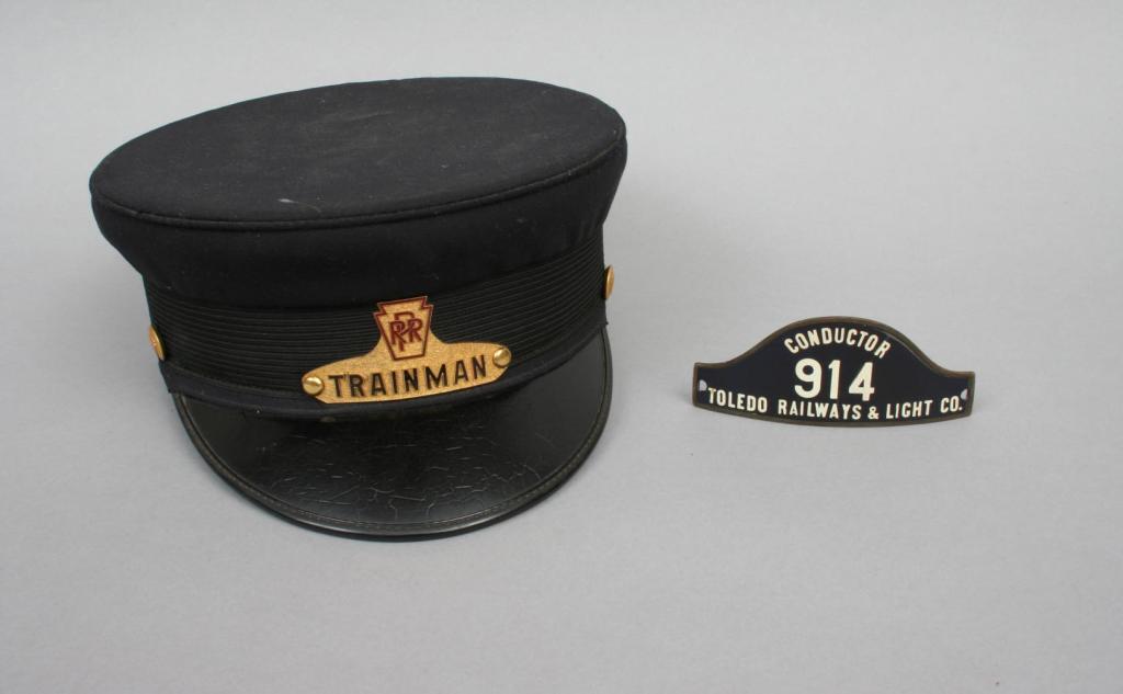 Comprising a Pennsylvania Rail Road Train Man hat and a Toledo Railways and Light Co. Conductor badge, #924. Condition: excellent, no damage or repair.