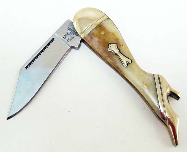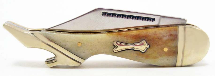 3 1/8" closed. Stainless clip blade. Smooth amber bone handles with nickel silver bolsters and inlay shield.