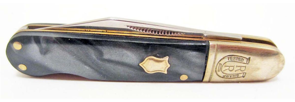 2 7/8" closed. 1 7/8" clip blade. Embossed bolster. Midnight swirl synthetic handles