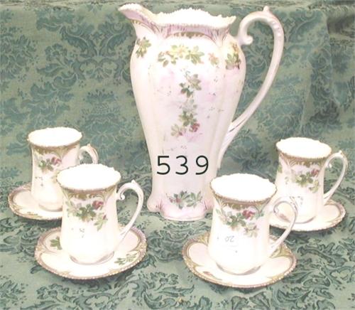 RM RSP satin finish chocolate set with 4 cups and saucers – No lid, Tiffany border on cups