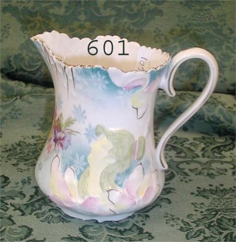 Star mold mark 4 ½” Hidden Image creamer with blue background